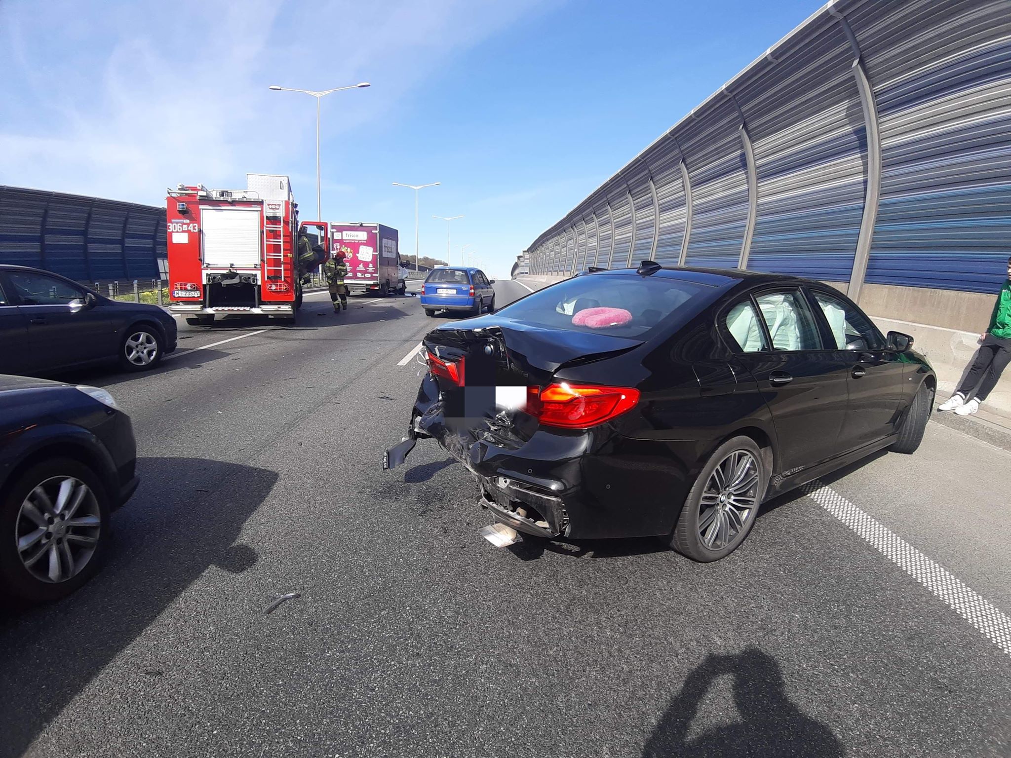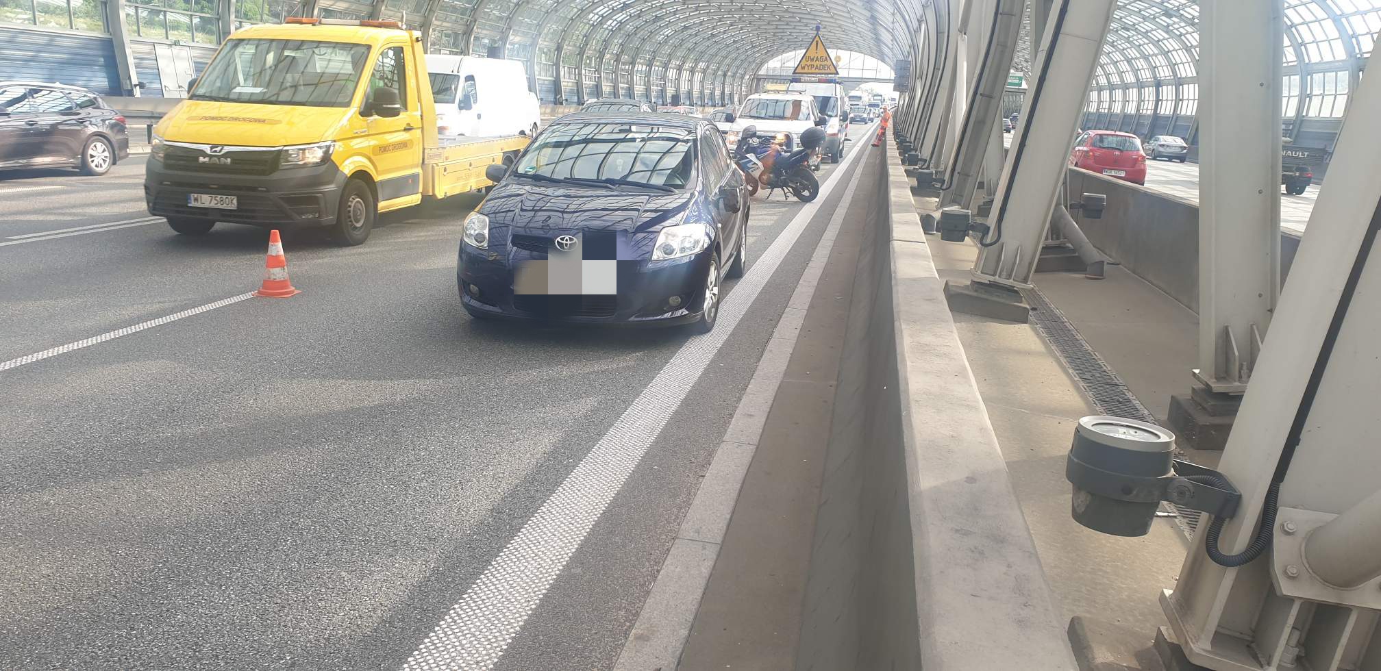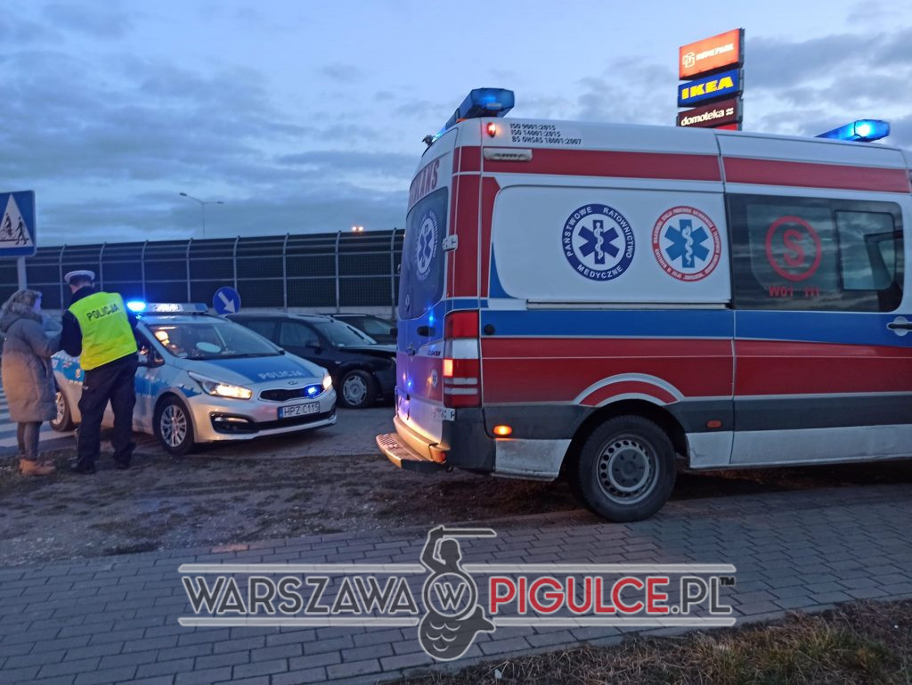 Miejsce wypadku drogowego z udziałem czterech aut na trasie s8 w warszawie, na wysokości ulicy powstańców śląskich.